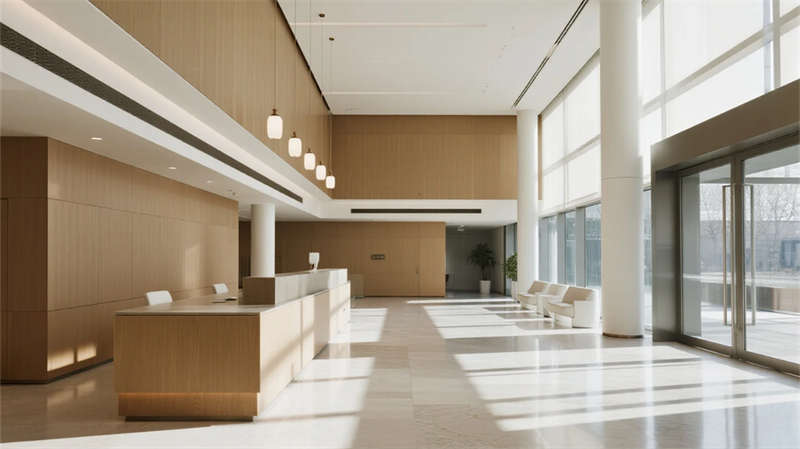 本辦公樓設(shè)計以現(xiàn)代簡約美學(xué)為基調(diào),營造出寧靜而高效的商務(wù)環(huán)境。建筑外觀采用純凈的玻璃幕墻與利落線條,在光影交錯中呈現(xiàn)輕盈通透的視覺體驗;步入大廳,淺色石材與溫潤木質(zhì)元素相融,挑高空間與落地窗引入豐沛自然光,傳遞開放包容的氛圍。內(nèi)部功能區(qū)布局注重人性化:開放式辦公區(qū)以靈活隔斷促進協(xié)作,綠植點綴為空間注入生機;簡約會議室配備智能設(shè)施,滿足高效溝通需求。員工休憩區(qū)與樓頂花園成為亮點——前者以暖色調(diào)家具打造社交角落,后者則用木質(zhì)平臺、綠籬與城市天際線共構(gòu)都市綠洲,讓工作者在忙碌之余俯瞰風(fēng)景、釋放壓力。電梯廳與衛(wèi)浴空間延續(xù)統(tǒng)一設(shè)計語言,細節(jié)處體現(xiàn)精致工藝。整體設(shè)計將自然、光感與簡約哲學(xué)交織,創(chuàng)造一處兼具理性效率與人文溫度的辦公場所。