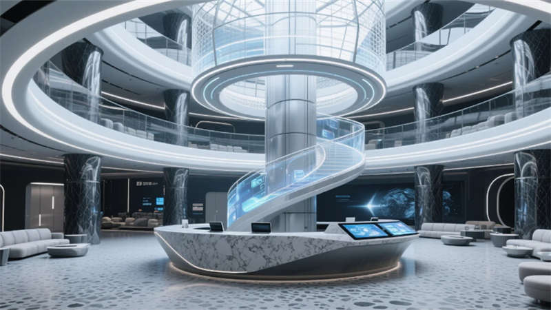 厘米級定位系統(tǒng)織就空間的數(shù)字神經(jīng)網(wǎng)絡(luò),實(shí)時(shí)感知行為軌跡的熱力圖譜。增強(qiáng)現(xiàn)實(shí)技術(shù)將虛擬協(xié)作層注入物理環(huán)境,會議紀(jì)要懸浮于白墻上空,項(xiàng)目進(jìn)度可視化流淌在地面光帶中。智能環(huán)境控制系統(tǒng)如同無形的指揮家,根據(jù)溝通場景自動(dòng)調(diào)節(jié)光域范圍與氣流速度,讓空間氛圍隨對話內(nèi)容自然脈動(dòng)。當(dāng)數(shù)字邏輯與建筑肌理深度融合,辦公室便升維為承載集體智慧的生命體。