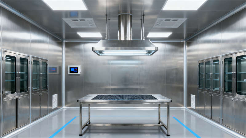 室內(nèi)空間圍繞醫(yī)療器械生產(chǎn)需求展開(kāi),各區(qū)域設(shè)計(jì)既適配功能,又保持視覺(jué)統(tǒng)一。無(wú)菌組裝區(qū)域選用無(wú)縫潔凈材質(zhì),避免積塵殘留,保障生產(chǎn)環(huán)境;精密檢測(cè)區(qū)側(cè)重隔音與光線控制,為檢測(cè)工作營(yíng)造低干擾氛圍;原料倉(cāng)儲(chǔ)區(qū)以規(guī)整的貨架布局,適配物料存放需求;研發(fā)實(shí)驗(yàn)室設(shè)置島式實(shí)驗(yàn)臺(tái)與通風(fēng)柜,兼顧實(shí)驗(yàn)操作與中試功能;潔凈走廊通過(guò)指引設(shè)計(jì)明確人流物流方向,確保流程有序;無(wú)菌更衣區(qū)按潔凈流程分區(qū),實(shí)現(xiàn)人員潔凈過(guò)渡;中控室以核心監(jiān)控設(shè)備為中心,方便實(shí)時(shí)掌握廠房運(yùn)行狀態(tài)。