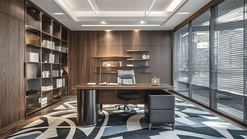 本1500㎡現(xiàn)代簡約辦公室設(shè)計(jì)以'高效協(xié)作·人文關(guān)懷'為核心,采用模塊化空間布局提升使用彈性。主色調(diào)選用淺灰、白、木三色系,局部點(diǎn)綴企業(yè)深藍(lán)色強(qiáng)化品牌認(rèn)知。開放式辦公區(qū)采用1.2m×1.8m標(biāo)準(zhǔn)工位模塊,通過玻璃隔斷實(shí)現(xiàn)90%自然光滲透率。智能照明系統(tǒng)根據(jù)日照強(qiáng)度自動(dòng)調(diào)節(jié)色溫,全年節(jié)電率達(dá)35%。核心筒改造區(qū)運(yùn)用曲面木飾面弱化建筑結(jié)構(gòu),形成自然交流節(jié)點(diǎn)。聲學(xué)設(shè)計(jì)方面,蜂窩吸音板(NRC 0.85)與隔音艙(STC 52)組合控制噪音污染。茶水區(qū)采用磁吸軌道插座系統(tǒng),支持設(shè)備靈活接入。所有家具均符合WELL建筑標(biāo)準(zhǔn),辦公椅配備6向調(diào)節(jié)功能。通過BIM技術(shù)實(shí)現(xiàn)管線綜合,保留3.2米凈高營造開闊感。