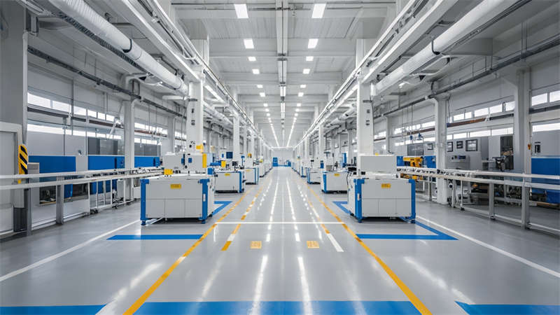 本6500㎡廠房設(shè)計采用現(xiàn)代工業(yè)風為核心,融合功能性與科技美學??臻g規(guī)劃嚴格遵循生產(chǎn)流程,劃分生產(chǎn)、倉儲、辦公、輔助四大模塊,通過鋼架玻璃隔斷實現(xiàn)通透性與分區(qū)管理。主色調(diào)選用深灰、淺灰、企業(yè)藍三色體系,地面采用耐磨環(huán)氧地坪漆,墻面運用金屬波紋板與混凝土質(zhì)感涂料。智能化設(shè)計貫穿全廠,集成AGV物流系統(tǒng)、環(huán)境監(jiān)測屏及LED導向標識。重點區(qū)域如入口LOGO墻、橙色休息區(qū)等植入色彩心理學應(yīng)用,既保持工業(yè)空間理性特質(zhì),又提升員工舒適度。照明系統(tǒng)采用分級控制,生產(chǎn)區(qū)6500K高顯指LED工礦燈保障作業(yè)精度,辦公區(qū)4000K暖光營造高效氛圍。
