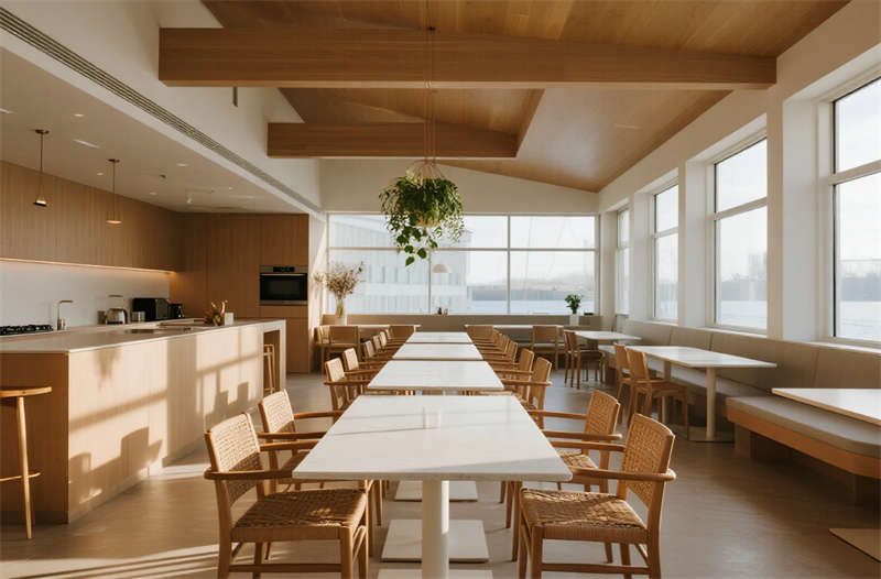 該設(shè)計(jì)以“城市綠洲”為核心理念,打造兼具功能與美學(xué)的經(jīng)濟(jì)型住宿空間。建筑外觀采用干凈利落的幾何切割,淺灰與玻璃材質(zhì)碰撞出輕盈現(xiàn)代感,入口綠植墻軟化都市冷硬氛圍。內(nèi)部空間貫徹簡(jiǎn)約哲學(xué):模塊化家具系統(tǒng)最大化利用面積,榻榻米客房集成儲(chǔ)物與休憩功能,隱藏式燈光營(yíng)造舒緩氛圍。公共區(qū)域強(qiáng)調(diào)共享與自然連接,早餐區(qū)落地窗引入晨光,綠植點(diǎn)綴的休息區(qū)提供社交場(chǎng)景。材質(zhì)選擇克制而統(tǒng)一,淺木色、微水泥與亞麻織物構(gòu)成低飽和度基調(diào),局部點(diǎn)綴抽象線條藝術(shù),呼應(yīng)合肥現(xiàn)代都市氣質(zhì)。設(shè)計(jì)聚焦高效運(yùn)營(yíng)與人文關(guān)懷,通過(guò)智能分區(qū)和環(huán)保細(xì)節(jié),為旅客提供回歸本質(zhì)的寧?kù)o棲居體驗(yàn)。