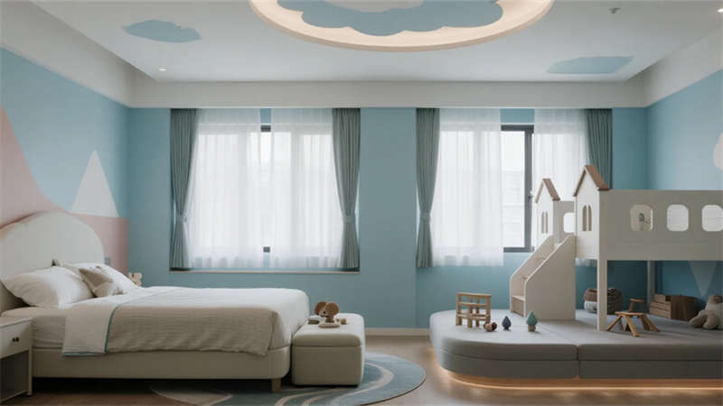 公共區(qū)域強(qiáng)調(diào)功能與美學(xué)的平衡:開(kāi)放式游樂(lè)區(qū)釋放孩子天性,閱讀角的樹(shù)洞書(shū)架激發(fā)想象力,手工坊的彩虹收納系統(tǒng)培養(yǎng)創(chuàng)造力。戶(hù)外庭院融入沙坑與綠植,讓自然成為游戲場(chǎng);夜晚的星空影音室則轉(zhuǎn)為家庭溫馨劇場(chǎng)。整體設(shè)計(jì)通過(guò)流動(dòng)的空間布局,讓家長(zhǎng)與孩子在簡(jiǎn)約美學(xué)中共享親密時(shí)光,重新定義合肥親子度假的體驗(yàn)方式。