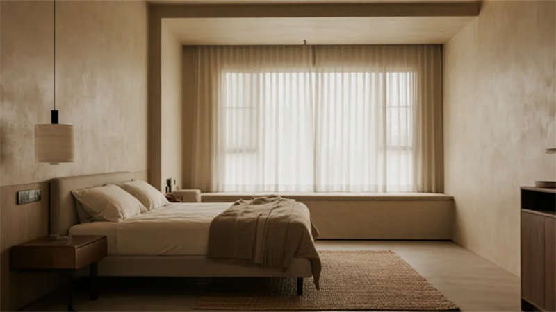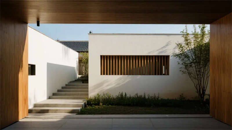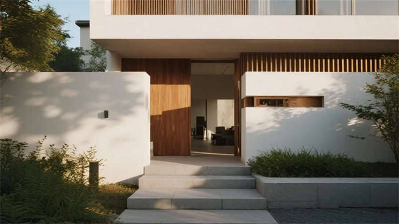 該設(shè)計以現(xiàn)代簡約語言重構(gòu)居住本質(zhì),將自然光影作為空間敘事的主角。建筑外觀采用純凈的幾何體塊組合,原木格柵與純白墻面對話,形成克制而溫暖的初印象。室內(nèi)摒棄冗余裝飾,通過微水泥的質(zhì)樸肌理、實木的溫潤觸感以及亞麻織物的呼吸感,構(gòu)建出具有生命力的簡約美學(xué)。