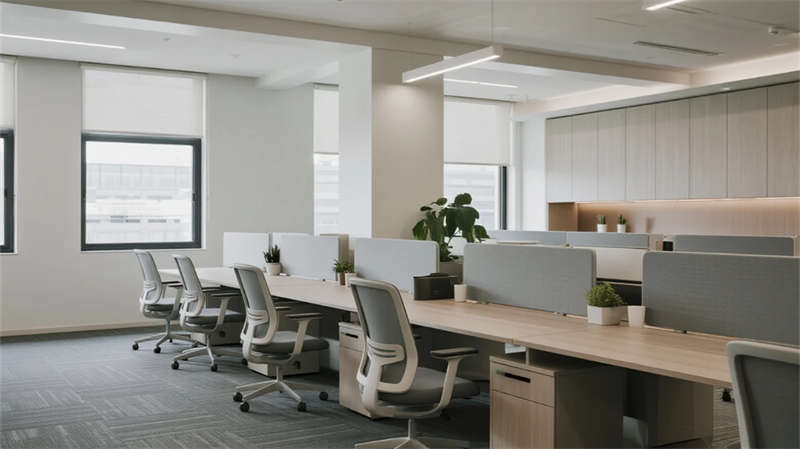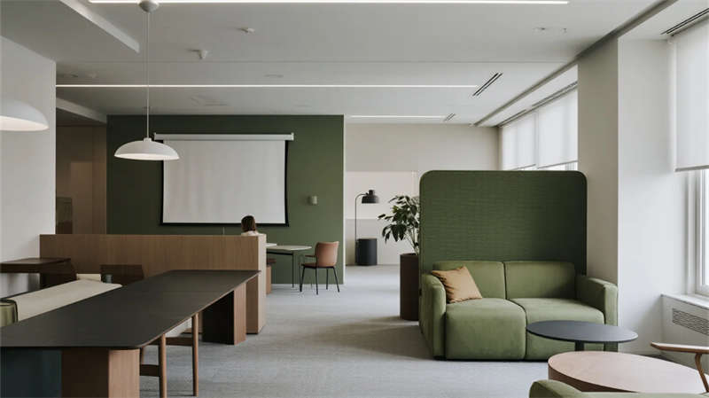 在現(xiàn)代簡約風(fēng)格的引領(lǐng)下,該辦公空間以開放性和人文關(guān)懷為核心,打造了一個(gè)流暢而高效的日常工作環(huán)境。整體設(shè)計(jì)強(qiáng)調(diào)視覺統(tǒng)一性,通過淺色調(diào)的墻面與地板、簡潔的家具線條以及自然元素的融入,營造出寧靜而專業(yè)的氛圍。功能區(qū)之間無縫銜接,例如協(xié)作區(qū)與開放式辦公區(qū)通過綠植和智能燈光形成自然過渡,確保團(tuán)隊(duì)互動(dòng)的同時(shí)兼顧個(gè)人專注需求。休息茶水區(qū)則以溫馨的布局促進(jìn)員工放松,而創(chuàng)意工坊區(qū)則激發(fā)創(chuàng)新思維,多功能活動(dòng)區(qū)則支持多樣化的工作模式。