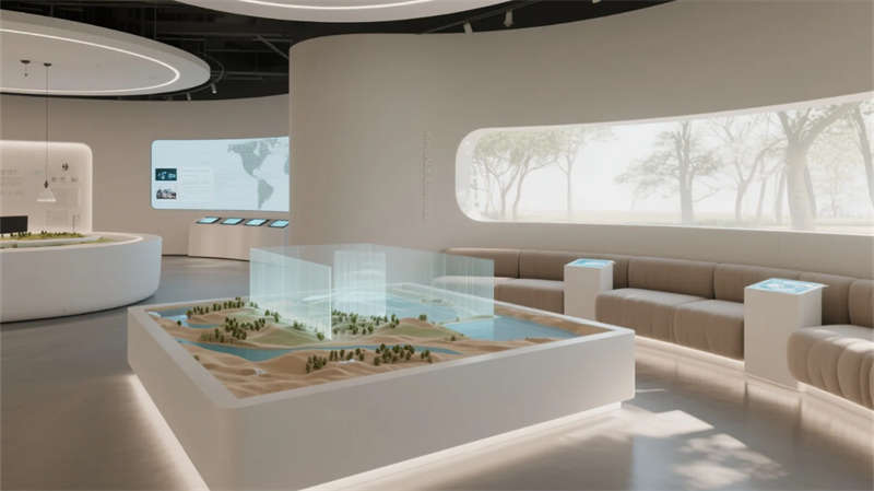 這座展廳以現(xiàn)代簡(jiǎn)約風(fēng)格為核心,打造流暢而富有張力的空間體驗(yàn)。入口區(qū)以開放姿態(tài)迎接參觀者,核心展示區(qū)陳列創(chuàng)新展品,互動(dòng)區(qū)通過(guò)科技裝置激發(fā)探索樂(lè)趣。多媒體區(qū)以視聽盛宴強(qiáng)化敘事,休息區(qū)則提供舒適角落促進(jìn)交流,會(huì)議區(qū)靈活多變適應(yīng)多樣需求。主題區(qū)巧妙融入本土特色,未來(lái)區(qū)以先鋒設(shè)計(jì)點(diǎn)燃靈感火花。整體設(shè)計(jì)中,簡(jiǎn)潔線條與中性色調(diào)營(yíng)造寧?kù)o基調(diào),高科技元素如數(shù)字屏和智能照明無(wú)縫融入,增強(qiáng)功能性與藝術(shù)感。空間動(dòng)線自然引導(dǎo),從喧囂到沉思,材質(zhì)選用環(huán)保而溫暖,綠植點(diǎn)綴平衡科技冷峻。展廳不僅服務(wù)于展示,更成為啟發(fā)對(duì)話與思考的場(chǎng)所,每一功能區(qū)銜接緊密,共同編織一場(chǎng)關(guān)于未來(lái)的故事。在合肥這座活力之城,設(shè)計(jì)以包容姿態(tài)回應(yīng)城市脈動(dòng),為公眾帶來(lái)沉浸式文化之旅。